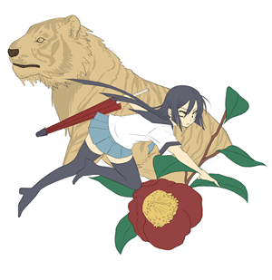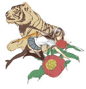 人物、虎、椿は各々別レイヤに。