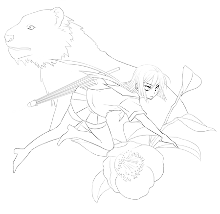 虎がアレな状態ですが、とりあえず線画完成。