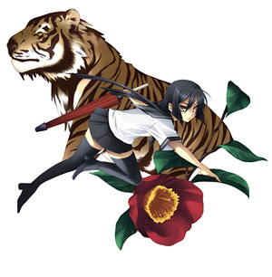 分かりにくいですが、椿や人物なんかもそれぞれ左上から光当ててます。